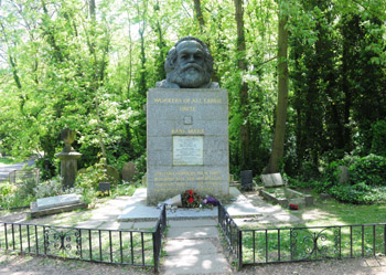這是2011年5月4日在英國倫敦海格特公墓拍攝的卡爾·馬克思墓。 1883年,馬克思這個當代最偉大的思想家,停止了思想。但是,他的《共產黨宣言》、《資本論》等并沒有隨著他的肉體而消亡!⌒氯A社記者