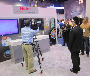 在海爾展區,實現全面升級的“腦力波”電視也吸引了大批觀眾。據了解,海爾是全球唯一一家將腦電波技術應用于電視產品的企業,也代表了人機交互電視的最高技術成果。