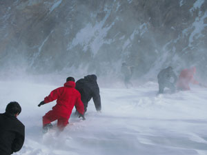 西部管道公司員工在西氣東輸二線果子溝段巡線時遭暴風雪。