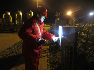 中亞天然氣管道員工在現場巡檢。