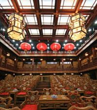 李少春紀念館坐落在霸州市區益津中路,由貴賓廳、展廳和古典小戲樓(如圖)三部分組成,總面積3000平方米。