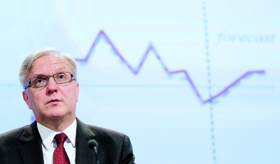 圖為歐盟委員會負責經濟與貨幣事務的委員雷恩在公布報告后的新聞發布會上講話。他說:“歐元區可能要面臨的衰退將會是輕度和暫時的。但是衰退的趨勢是否能夠得以扭轉,未來幾個月之后才能作出判斷,主要是看歐元區將采取何種政策!