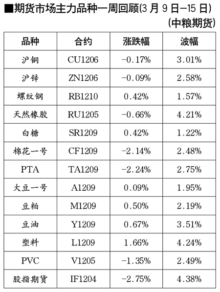 期貨市場主力品種一周回顧[3月9日-15日]