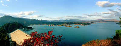 密云水庫是亞洲最大的水庫,有“燕山明珠”之稱。它位于北京東北密云縣城西北,坐落于燕嶺群峰之中,橫截潮、白兩河,環湖公路110公里,乘車轉一圈需三個多小時。密云水庫是具有防洪、灌溉、發電和城市用水等綜合功能的特大型水庫,是京城用水最主要的供水源地。