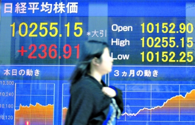 受隔夜美股大漲提振,27日東京股市日經股指上漲236.91點,收于10255.15點,大漲2.36%,首次高于去年3月11日大地震當天水平。