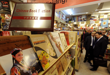 中國圖書伊斯蘭堡設專柜。2月16日,中國圖書在伊斯蘭堡設立專柜儀式在巴基斯坦最大的書店—薩義德書店舉行,吸引了當地群眾前來瀏覽。記者 沈橋