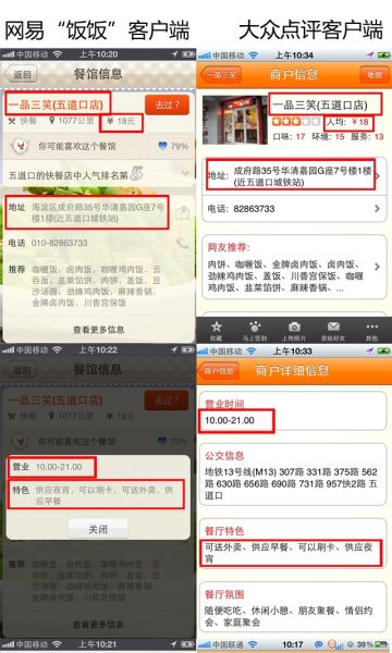大眾點評與網易飯飯客戶端對比(圖片由大眾點評提供)