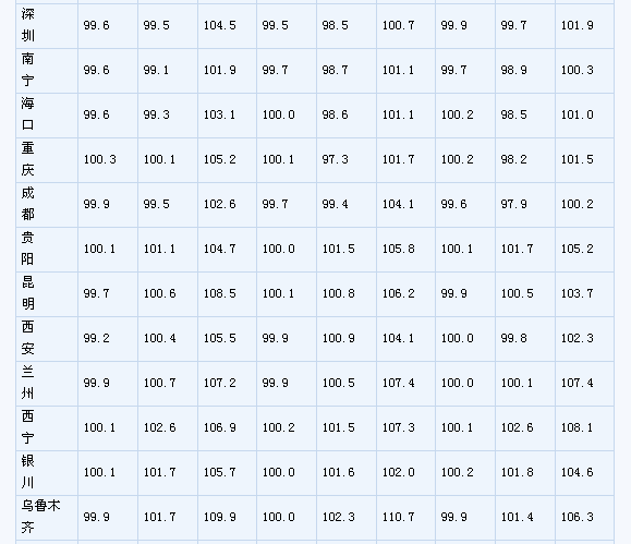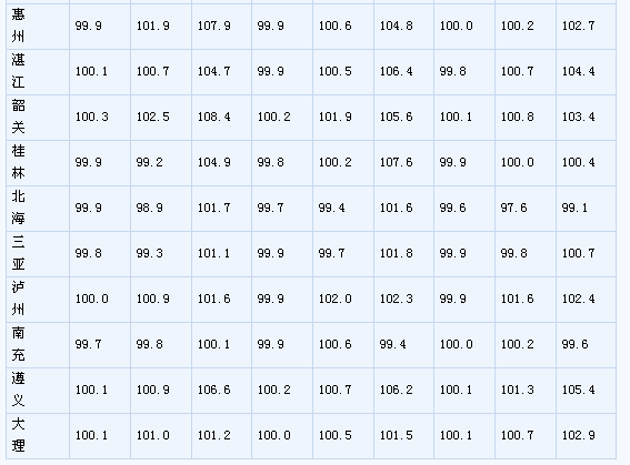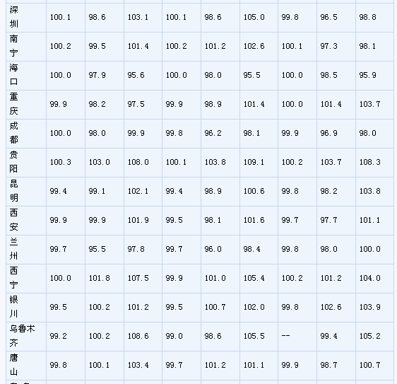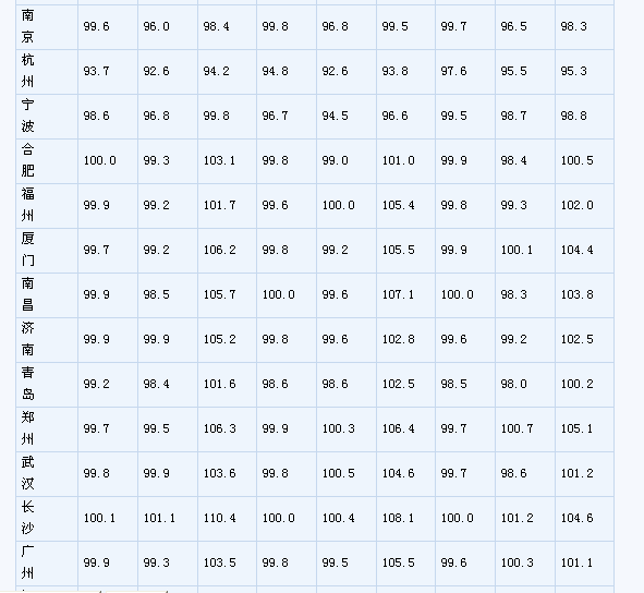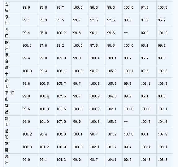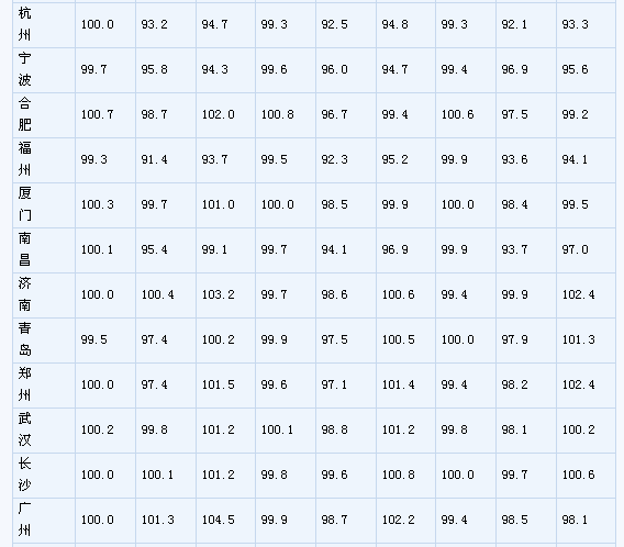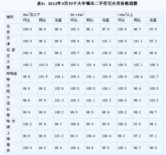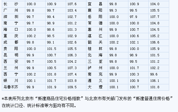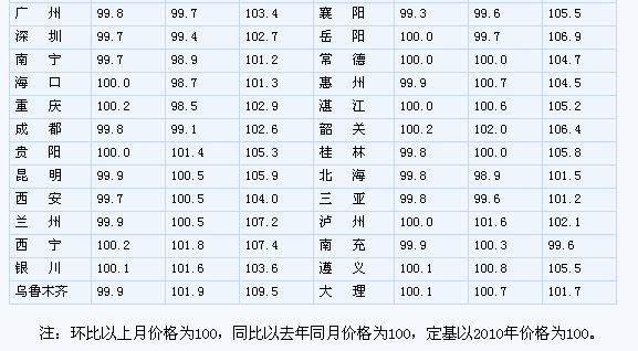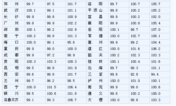 (一)與上月相比,70個大中城市中,價格下降的城市有46個,持平的城市有16個,上漲的城市有8個。環比價格上漲的城市中,漲幅均未超過0.2%。 (二)與去年同月相比,70個大中城市中,價格下降的城市有38個,比2月份增加了11個;持平的城市有3個,上漲的城市有29個。3月份,同比漲幅比2月份回落的城市有21個,漲幅均未超過2.1%。