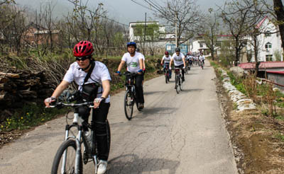 4月22日是世界地球日,當天,歐盟輪值主席國丹麥聯合歐盟各國使節在北京組織自行車騎行活動,以環保的名義推廣綠色出行方式和綠色解決方案,來自歐盟的駐華大使、媒體、企業約150人參加此次活動。 丹麥駐華大使裴德盛說,“有效的環境政策能夠幫助解決關鍵性的環境問題,丹麥和歐盟的經驗值得中國借鑒來應對這項挑戰!鄙蠄D為裴德盛在活動中講話,下圖為騎行活動在北京近郊舉行。(丹麥駐華使館供圖)