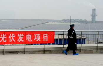 圖為位于京東方第8.5代TFT-LCD生產線三座主廠房屋頂的京東方北京8.5代線廠房光伏發電項目。項目總裝機容量5000千瓦,年節約煤炭3200噸。新華社記者 羅曉光/攝 |