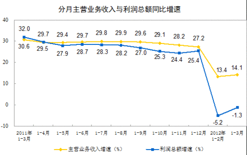 圖為分月主營業務收入與利潤總額同步增速示意圖