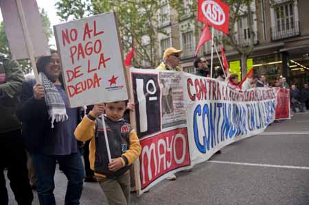 5月1日,在西班牙馬德里,一名兒童參加游行。 當日,西班牙首都馬德里舉行大規模群眾游行集會,抗議政府削減教育及醫療保障開支,并呼吁政府加大力度解決就業問題,數萬名群眾參與集會。受經濟危機影響,西班牙政府采取一系列緊縮措施,削減財政支出,以減少赤字。
