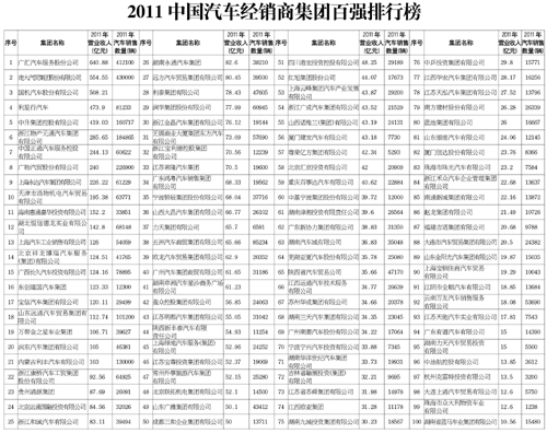 中國汽車流通協會5月8日在北京發布了“中國汽車流通行業經銷商百強排行榜”,廣匯汽車服務股份公司等百家經銷商集團榜上有名!鞍賰|集團俱樂部”也同時成立。 分析“百強企業”的統計數據,體現以下主要特征: 百強企業規模進一步擴大。數據表明,2011年度百強企業營業收入已達8515.27億元,同比增長26%;銷量達392萬輛,同比增長41%;百強企業人力資源總額達32.94萬人,同比增長23%;同時,2011年度百強企業所包含的經營網店數量達到5665家,同比增長82%,其中授權4S店達3952家,同比增長27%。 從營業收入總額來看,2011年度營業收入達到百億的經銷商集團已達21家;營業收入超過500億的企業已增至三家;并且,榜首企業營業收入逐年提升,今年位列第一的經銷商集團營業收入超過640億元,同比增長19.14%;2009年至2011年百強排行榜第50名銷售收入已由13億元增至50億元。 百強企業銷量增速高于產業平均水平。在2011年度全國汽車行業銷售增速整體放緩的形勢下,百強企業銷量增速依舊高于行業平均水平,2011年度百強企業新車銷售量達392萬輛,同比增長41%,高出產業銷量增速38.5個百分點。 百強企業整車銷售收入仍是營業收入的主要來源。從百強企業收入結構上來看,整車銷售收入仍是營業收入的主要來源,2011年度整車業務收入占比88%,比去年同期上漲一個百分點;維修業務占比7%,與去年持平;金融保險業務占比達4%,比去年同期增長兩個百分點。百強企業收入結構數據表明,百強企業整車銷售收入占據主導地位,汽車后市場發展仍然具有廣闊的發展空間。 百強企業盈利水平穩中有升。百強企業盈利水平數據表明,2011年度百強企業毛利率、凈利率和資產回報率水平均有提升:百強企業整體毛利水平達7.62%,高出2010年度一個百分點;凈利率達2.31%,與2010年度持平;資產回報率水平提升至29.31%,比2010年度提升6.5個百分點。 2011年度中國汽車流通行業經銷商百強排行榜發布的同時,首次成立了“百億集團俱樂部”, 致力于優化行業整體管理運營水平,提升領先企業的知名度和競爭力,更有力地發揮標桿企業的帶頭作用,引領業內企業健康發展。