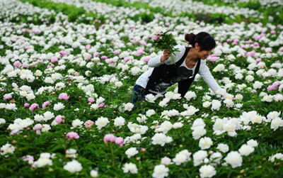中江白芍系多年生草本藥用植物,人工栽培有300年的歷史。當地政府實行“公司+農戶+市場”和“公司+業主(大戶)”的運行模式,除了培育壯大了一批醫藥企業,還不斷擴大白芍種植面積,配套旅游基礎設施,依托萬畝芍藥地大力發展以白芍為特色的中醫藥養生旅游經濟,目前,全國各地眾多游客慕名而來。四川省中江縣集鳳鎮石埡,一位來自成都的游客在芍藥地里采摘芍藥花。