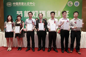 5月15日,中國質量認證中心頒發我國首批節能燈環保認證證書。記者 任正來/攝 |