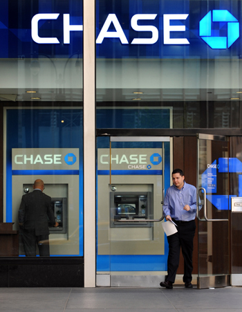 美國最大銀行摩根大通5月10日宣布旗下投資部門一項交易組合虧損20億美元,震驚全球金融界,讓英美等國銀行監管呼聲再次高漲。 圖為2010年4月14日,一名男子從美國紐約一家摩根大通銀行營業點走出。記者