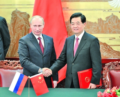胡錦濤與俄總統普京共同出席兩國相關合作文件簽字儀式
