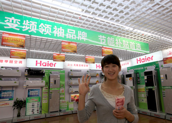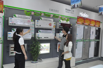 因為節能補貼政策實施,青島的尹小姐購買海爾1級能效變頻空調時少花了400元。資料照片 |