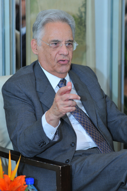 20多年前,巴西通貨膨脹率曾接近2500%,迫使巴西連續幾屆政府都把反通脹作為首要任務。1993年底,面對通脹一籌莫展的佛朗哥總統選擇才出任外交部長不久的社會學家費爾南多·恩里克·卡多佐擔任財政部長?ǘ嘧舸蟮堕煾珜嵭小袄讈啝栍媱潯,把巴西從惡性通貨膨脹泥潭中拉了出來,為日后的經濟改革與發展奠定基礎。1995年,卡多佐以絕對優勢贏得大選,當選巴西總統。1995年至2003年擔任總統期內,卡多佐一方面推動國有企業民營化,積極引進外資,另一方面著手進行多項重要社會改革,為巴西成為金磚國家打下堅實基礎。近日,卡多佐總統受巴西最大銀行集團億達富邀請來到中國,《經濟參考報》記者有機會近距離接觸這位創造巴西經濟奇跡的改革者。