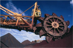 淡水河谷開發、生產和銷售鐵礦石、球團、鎳、銅、鋁礬土、氧化鋁、鋁、鉀鹽、高嶺土、錳、鐵合金、鈷、鉑族金屬以及其他貴金屬,曾是巴西知名大型國有企業。1997年巴西啟動了淡水河谷的私有化進程。圖為淡水河谷公司機器開采礦石。 |