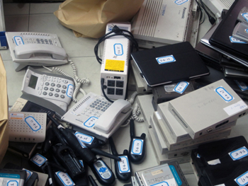 泰國警方現場繳獲的用于詐騙的工具。圖片由江蘇警方提供 |