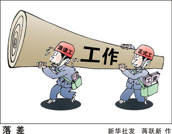 來自湖北、重慶以及北京等地的調查顯示,勞務派遣工做不到“同工同酬”的待遇,不少勞務派遣工都反映,他們和身邊的同事做一樣的活,干得多些,拿得卻比別人少得多。