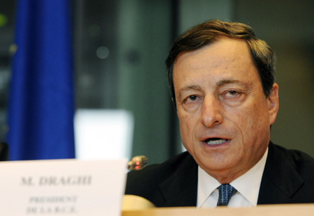 歐洲央行行長德拉吉9日在布魯塞爾就當前歐元區經濟形勢和歐洲央行貨幣政策向歐洲議會經濟與貨幣事務委員會作證。德拉吉重申,歐洲央行將采取一切手段捍衛歐元。 上周,歐洲央行將歐元區主導利率從1%下調25個基點至0.75%,為歷史最低水平。德拉吉承認,今年二季度歐元區經濟增長乏力且充滿不確定因素,但期待未來歐元區經濟能夠“逐漸恢復增長”。