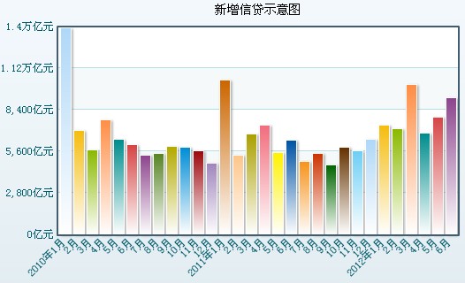 初步統計,2012年上半年社會融資規模為7.78萬億元,比上年同期多135億元。其中,人民幣貸款增加4.86萬億元,同比多增6833億元;外幣貸款折合人民幣增加2765億元,同比少增596億元;委托貸款增加4827億元,同比少增2201億元;信托貸款增加3432億元,同比多增2519億元;未貼現的銀行承兌匯票增加6089億元,同比少增7178億元;企業債券凈融資8244億元,同比多1656億元;非金融企業境內股票融資1495億元,同比少1182億元。6月份社會融資規模為1.78萬億元,分別比上月和上年同期多6381億元和6940億元。