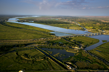 50多年前的河套大地,灌溉土地面積只有300多萬畝。那時,由于河套地區的所有渠道都是直接從黃河上開口,靠自流引水來澆灌土地,沒有調水閘門等水工設施,不能控制水量,所以,各渠道的引水常常受黃河水流大小變動的影響,黃河來水量少時,許多渠道難以進水,常常造成旱災;黃河來水量大時,洪水又常常會漫過渠道淹沒良田而形成洪澇災害。此外,由于黃河行河主流常常遷徙不定,各渠道引水口常因此而淤積報廢。