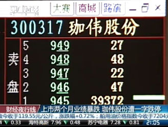 揚韜:珈偉股份今年5月11日才上市,一個多月后,公司預告上半年利潤同比下滑95%,股價直接跌停。公司給的理由是美國天氣不好,導致銷售下滑所以利潤不濟。這還是新股嗎?這是“假偽股份”啊。