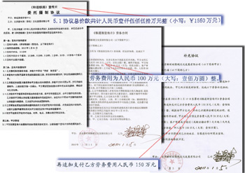 2011年1月,因追加10分鐘不同版本,雙方簽訂補充協議。這份補充協議除標明“北京新時刻影視文化發展有限公司追加支付張藝謀150萬元”外,還特別增加了“北京新時刻影視文化發展有限公司不得使用張藝謀的姓名、肖像進行任何商業宣傳”的補充條款,但該條款與北京新時刻影視文化發展有限公司和“鐵道影視音像中心”合同中“署名‘導演張藝謀’”的內容相悖。