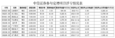 除此之外,以鎖定終止日收盤股價計算,中信證券在洪城水業上浮虧5145萬元,浮虧率達50.69%;在廣百股份上浮虧2870萬元,浮虧率達45.05;在順絡電子上浮虧2700萬元,浮虧率達37.82%;在海利得上浮虧6489萬元,浮虧率達55.38%;在江南高纖上浮虧2283萬元,浮虧率達54.43%;在成飛集成上浮虧1565萬元,浮虧率達25.75%;而按最新市值計算,在中金黃金上也浮虧5385萬元。9個虧損項目共計浮虧約4.94億元。