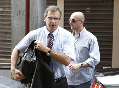 國際貨幣基金組織(IMF)和歐洲央行的觀察員5日表示,已完成對希臘的訪問,并對救助進程進行了檢查和監管。此前,歐盟、歐洲央行以及IMF官員來到雅典,與希臘財長商討未來兩年的115億歐元計劃。據悉,“三駕馬車”還將在九月份再來希臘商討下一步措施。圖為歐洲央行代表克洛斯馬薩奇(Klaus Masuch)5日參加在希臘財政部舉行的會議。