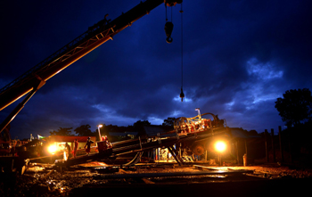 耶罔春海溝深達近30米,施工條件極其惡劣,沒有任何社會依托。海島上沒有淡水資源,配置泥漿必須用的淡水要去島外100多公里的地方尋找。特別是進入6月迎來緬甸的雨季,耶罔春更是天天下雨,施工困難重重……