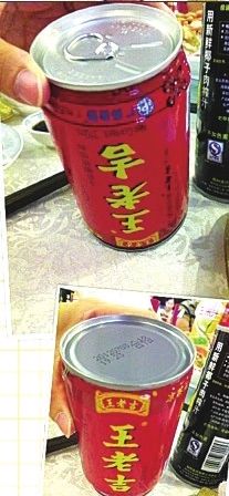 為證明廣藥生產王老吉涼茶的行為侵犯了自身權益,加多寶方面向記者提供了一組廣藥版王老吉涼茶的圖片。其中,有的產品在外包裝上出現了明顯失誤(如圖),“王老吉”三個字被印倒了。