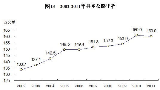 農村面貌加快改善,城鄉經濟社會發展一體化新格局逐步形成。黨的十六大以來的十年,是我國農業農村發生歷史性巨變、農民得實惠最多的時期之一,是“三農”發展的又一個“黃金期”。自黨中央作出社會主義新農村建設部署以來,黨和政府始終堅持把發展農村公共事業作為縮小城鄉差距的重要抓手,持續加強農村基礎設施建設和公共服務,農村水、電、燃氣、通訊等基礎設施建設進一步加強,農村生產生活環境大大改善。2011年全國縣鄉公路里程達160萬公里,比2002年增加26萬公里,東部和中部“村村通”公路目標已經實現,西部98%的行政村通了公路,全面完成國務院確定的“十一五”農村公路建設目標任務。通過實施飲水工程,解決了3.26億農村人口的飲水安全問題。