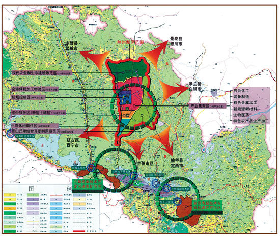 甘肅省、蘭州市黨委和政府高度重視蘭州新區開發建設,舉全省、全市之力支持新區發展,計劃通過5-10年的努力,把蘭州新區打造成為戰略性新興產業、高薪技術產業和循環經濟的集聚區,國家經濟轉型和承接東中部裝備制造業轉移的先導區,傳統優勢產業和現代化服務業的擴展區,向西開放的戰略平臺,目前已經有包括中石油國家戰略石油儲備庫、吉利汽車、三一重工在內的多家國內外大型企業落戶新區。規劃建設石化、高端裝備、新能源新材料等七大產業集群以及高薪技術產業等五大片區。經過5—10年的建設,蘭州新區將發展成為甘肅省乃至西北地區跨越式發展的重要經濟增長極,成為西部地區特色鮮明、功能齊全、產業聚集、服務配套、人居環境良好的現代化新區。