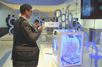 9月1日,一位參觀者在2012IFA海爾展廳拍攝海爾新概念洗衣機。記者 王平平