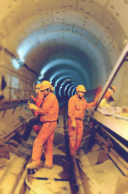 2012年8月24日,海濱城市煙臺晴空萬里,中鐵隧道集團煙臺萬華LPG項目工地上干得熱火朝天,機器轟鳴、車輛穿梭、工作人員有條不紊。從外圍看,要不是地面有一座高聳混凝土拌合站和忙碌的機加工車間,根本不會知道這是一處施工工地。和其他工程不一樣的是,中鐵隧道集團煙臺萬華LPG項目的“戰場”在地下一百多米,從地面開明槽按11%的坡度行走1600米,才到達洞庫施工,里面可謂是“別有洞天”。