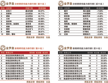 同樣,商業貿易行業分析師馮先濤、有色金屬行業分析師巨國賢、煤炭開采行業分析師沈濤也因過分看好個股后市而拖累其薦股成績,他們分別推薦的中化國際、正海磁材、煤氣化在20個交易日內最高漲幅-4.43%、-3.40%、-3.04%的成績,而這三只個股最大跌幅已經分別超11%、20%、15%。