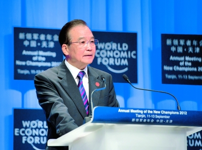 世界經濟論壇2012年新領軍者年會(第六屆夏季達沃斯論壇)11日下午在天津梅江會展中心開幕,國務院總理溫家寶出席開幕式并致辭。