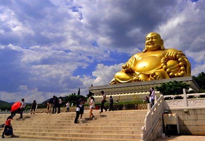 錦屏山風景區坐落在彌勒縣城北風景如畫的錦屏山上,位于昆河公路沿線,距彌勒縣城僅10公里,距省會昆明130公里,距石林風景區40公里。彌勒素有南滇福地之稱,彌勒因寺而名重,寺因彌勒而名傳。錦屏山雖不高,但山形獨特,鐘靈毓秀,氣勢磅礴,粗看像一道巨大的屏風,呵護著美麗富饒的峨山甸水;細看則像一尊景白天成的彌勒佛,結迦趺坐,護佑眾生。