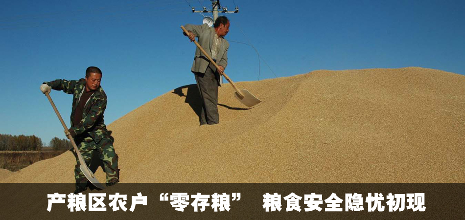 但國家糧食局的一項抽樣調查顯示,近年來農戶存糧趨于下降:有61%的農戶存糧只夠7個月所需的口糧;有10%的農戶存糧只夠維持3個月的消費需求;另有29%的農戶甚至不存糧或很少存糧。