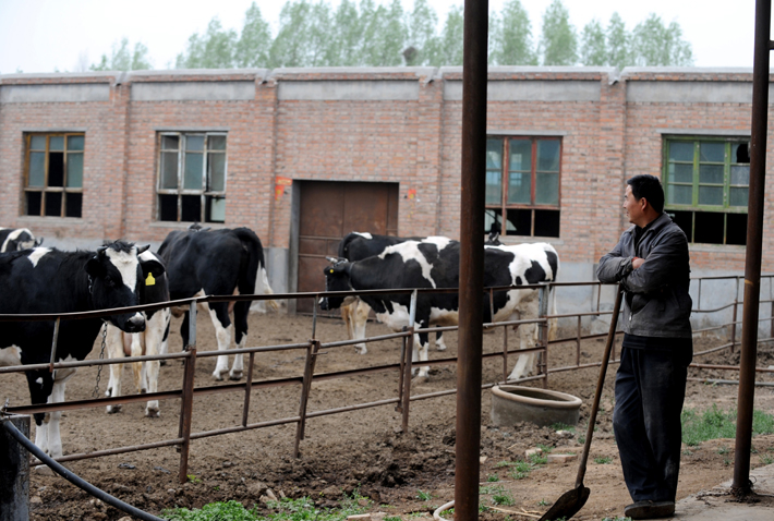 “現在養奶牛一年不如一年,我們這里好多奶農都堅持不下去了。合作社2010年3月的時候有2700多頭奶牛,現在還不到2300頭。很多人有賣牛的打算,可是又不知道賣了牛后怎么維生,所以下不了決心,就一直這樣將就著!毙聵肥虚h鎮興牧奶牛專業合作社負責人樊立波說。