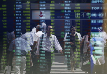 9月6日,受歐洲央行公布新一輪購債計劃等利好消息影響,亞太地區主要股市7日全線上漲。當天,在日本首都東京,行人身影映在顯示股票價格的電子屏幕里。新華社/路透 |