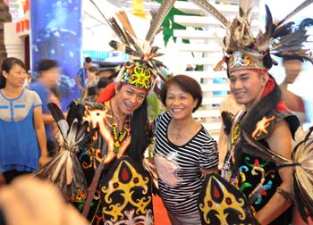 9月25日,在廣西南寧國際會展中心,參觀者在和印度尼西亞演員合影。 當日,第九屆中國-東盟博覽會迎來公眾開放日,數萬參觀者前往觀展。記者
