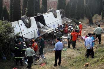 10月7日,我國青銀高速淄博段交通事故致13人死亡,9人重傷。消防官兵在車禍現場組織救援。新華社發 |