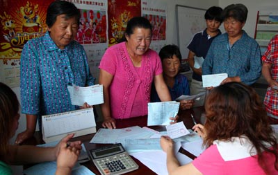 圖為北京市懷柔區懷北鎮東莊村村民在村委會上交新農合醫療報銷單據。新華社發