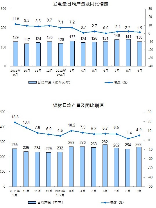 分輕重工業看,9月份,重工業增加值同比增長9.3