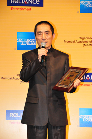 孟買國際電影節授予張藝謀終身成就獎。10月18日,在印度孟買,中國導演張藝謀在第14屆孟買國際電影節開幕式上發表獲獎感言。記者
